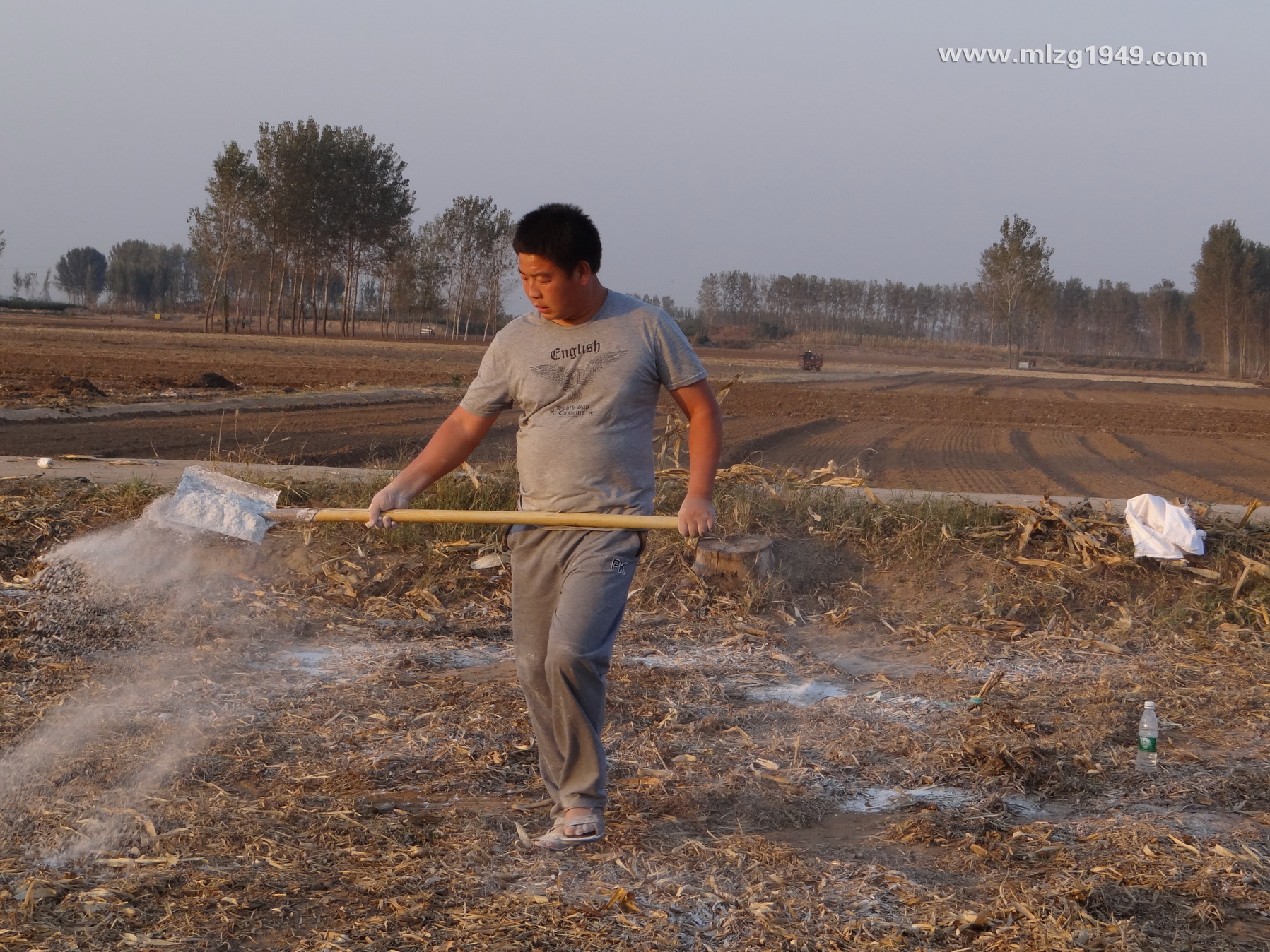 王会杰老师正在撒施底肥。