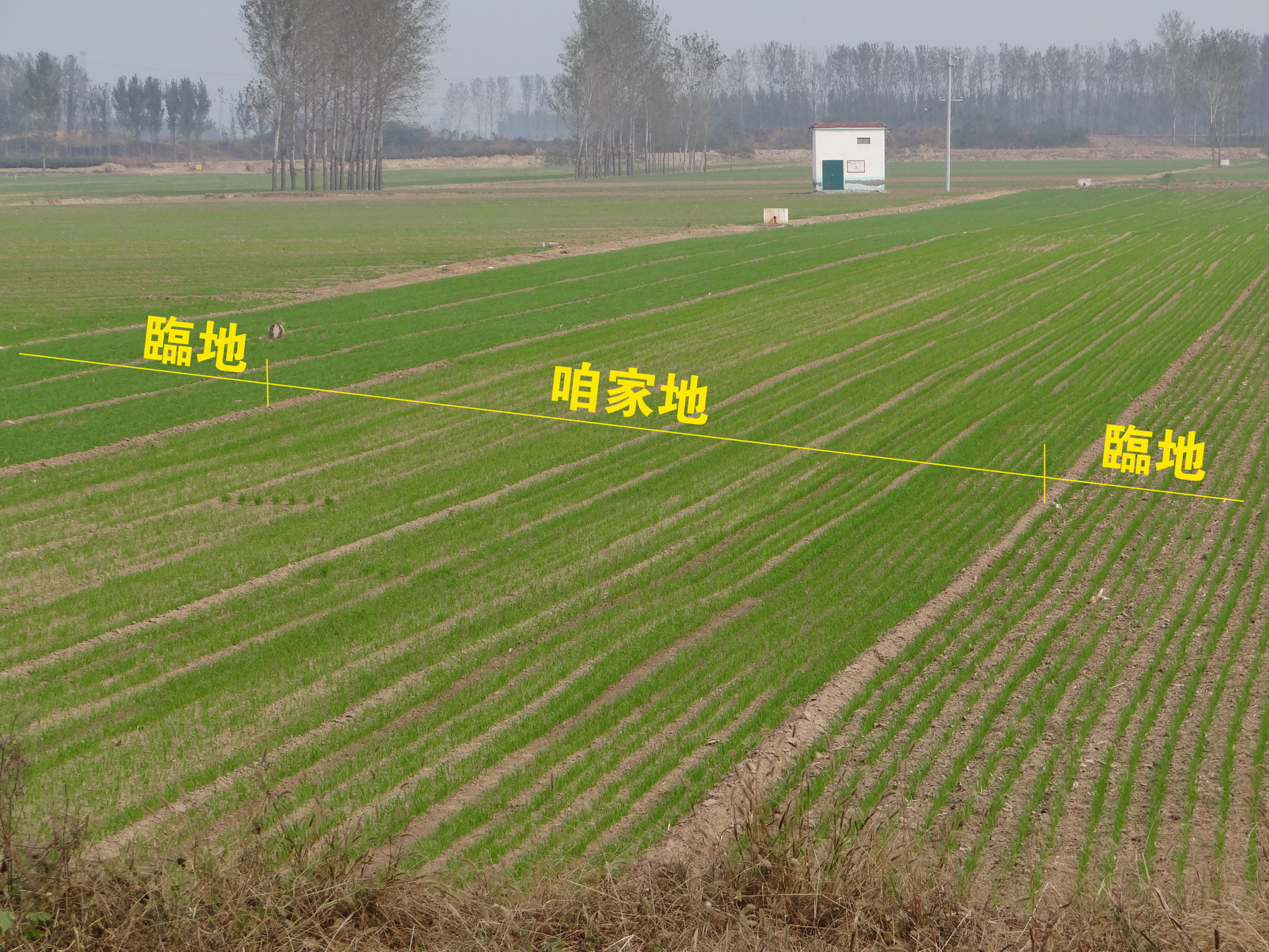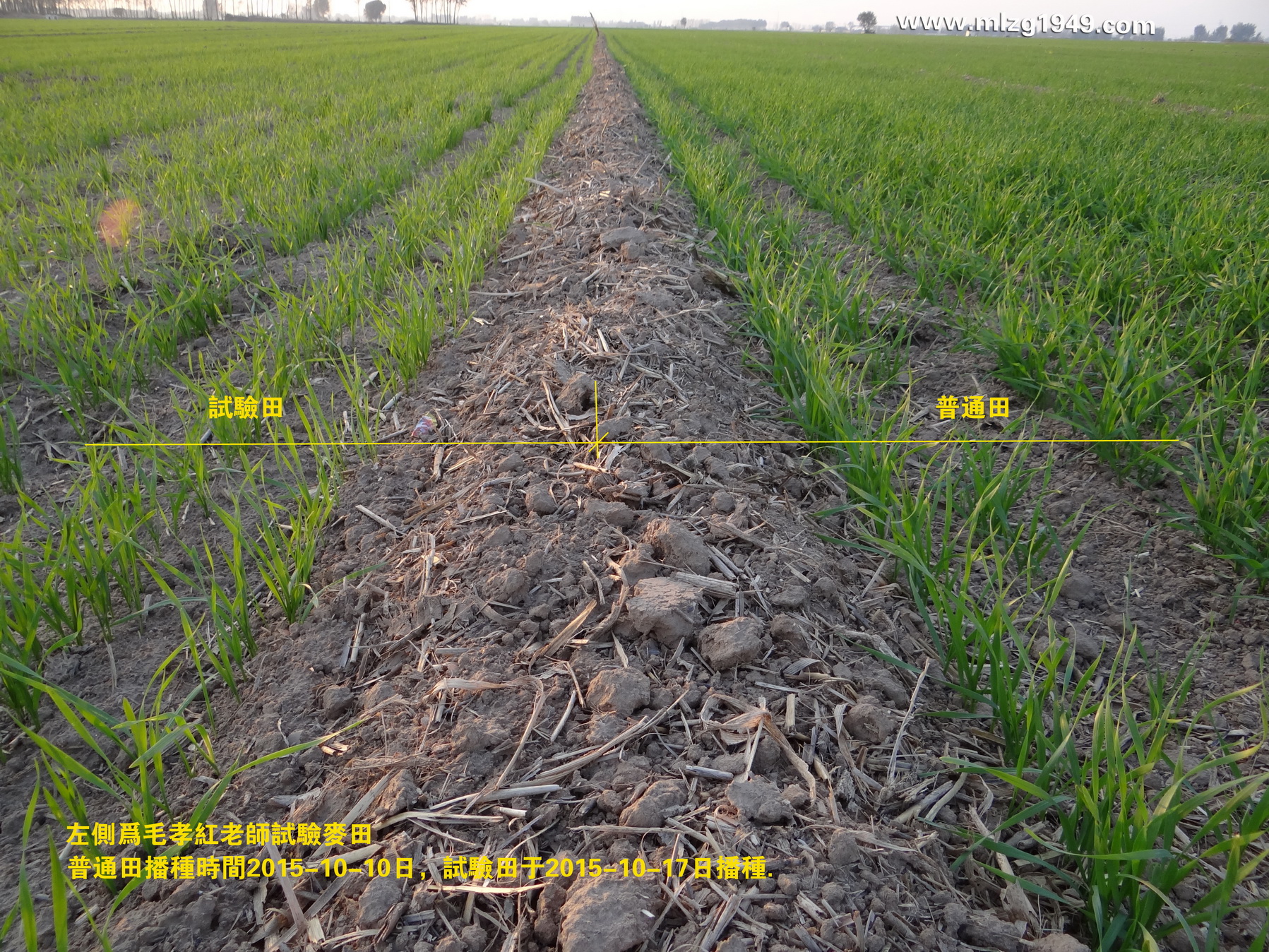 毛孝红老师试验田左邻为同期播种,普通田稍显泛黄。