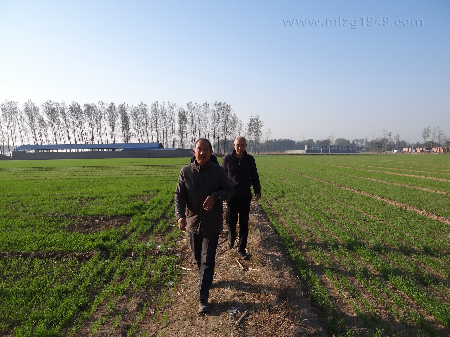 2015-11-02戴老师和曹老师一大早赶到王会杰老师貌似泛黄的试验田。