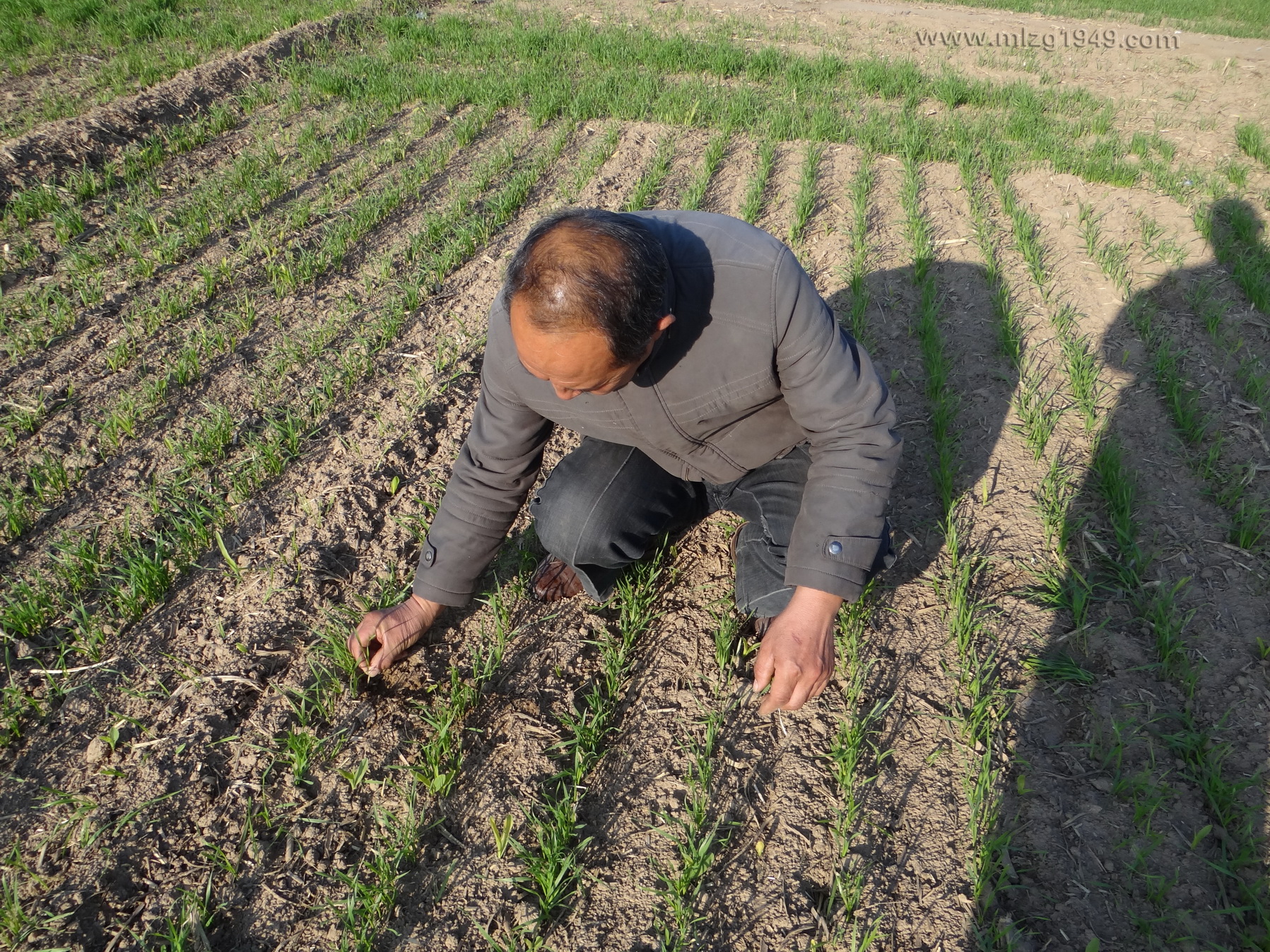 2015-11-02曹恭老师正在王会杰老师的试验田,拔出麦苗,准备观察根系。