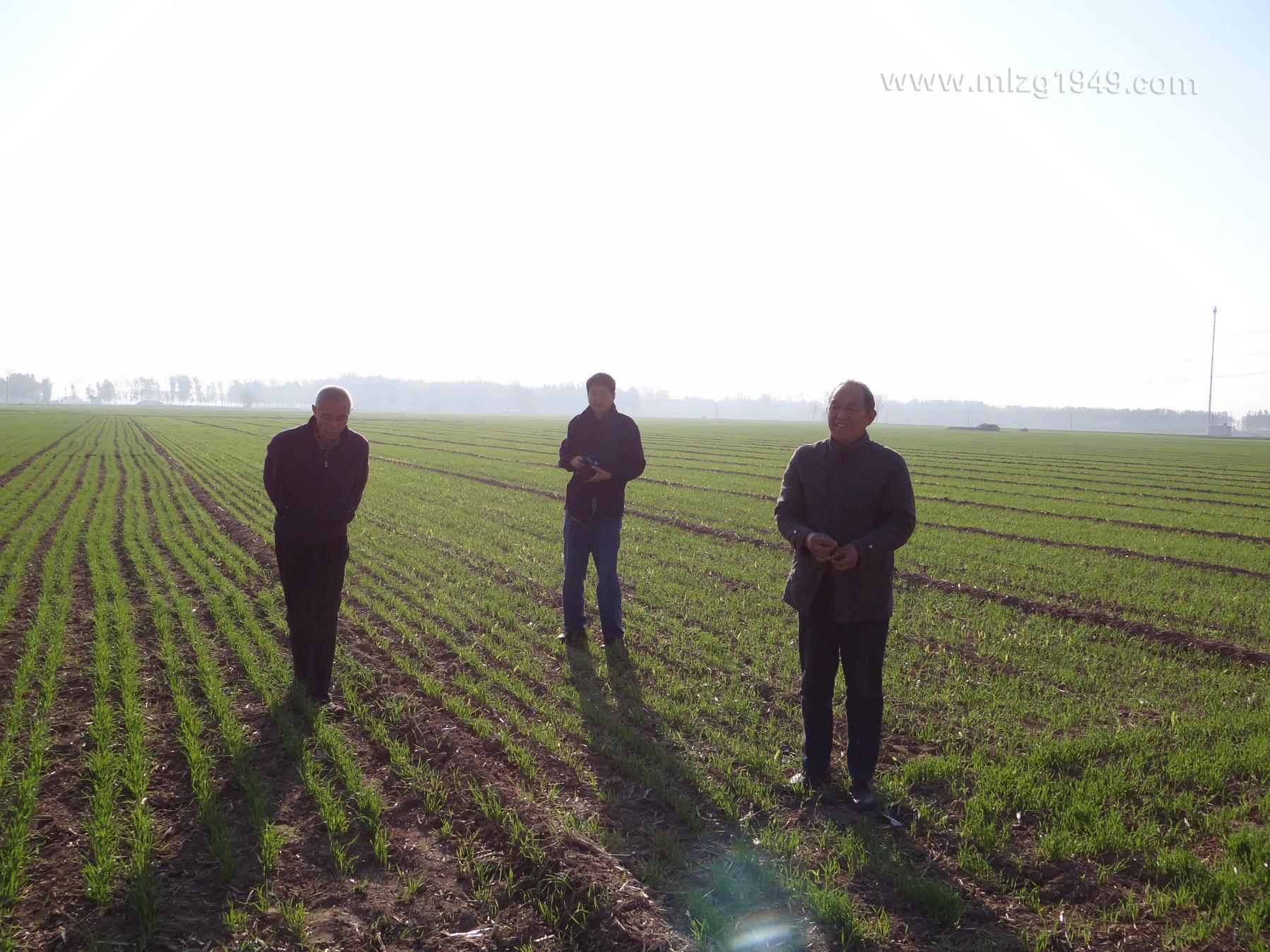 分析貌似泛黄的原因是播种量较小、麦苗稍有稀疏。